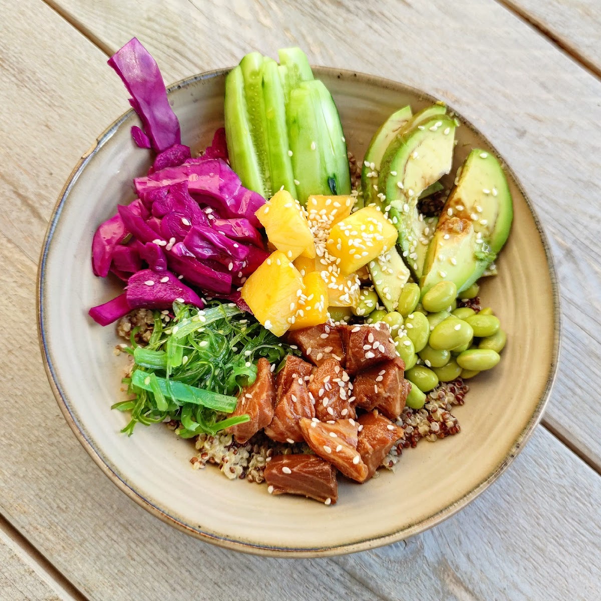 At Amara Café, the spotlight is on fresh, wholesome dishes that not only taste fabulous but also look stunning on the plate. Start your day right with their signature Amara Benedict, featuring perfectly poached eggs elevated with rich hollandaise sauce, accompanied by slices of cucumber, delicious salmon, and crunchy kale chips for just €13. The Special Omelet, made with fluffy eggs, ham, cheese, spinach, and sautéed onions, presents a tasty explosion of flavors for €11. For a lighter option, the Tostada Amara boasts smashed avocado topped with scrambled eggs, merging creamy textures with vibrant taste for only €12. For those craving a hearty breakfast, the Desayuno Inglés offers a delightful mix of poached eggs, keto bread, vegan meatballs, baked beans, and avocado—truly a dish that invigorates the senses at €13.